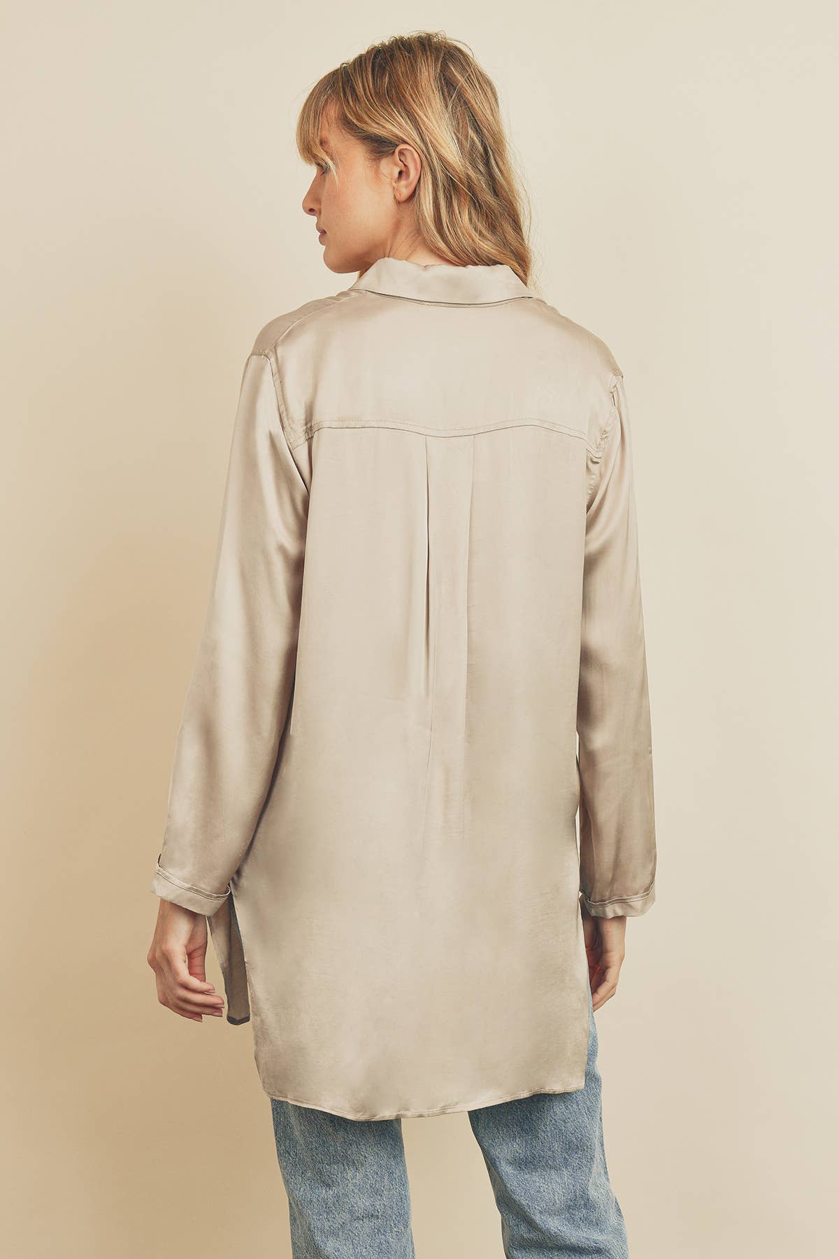Long Satin Button Up Shirt