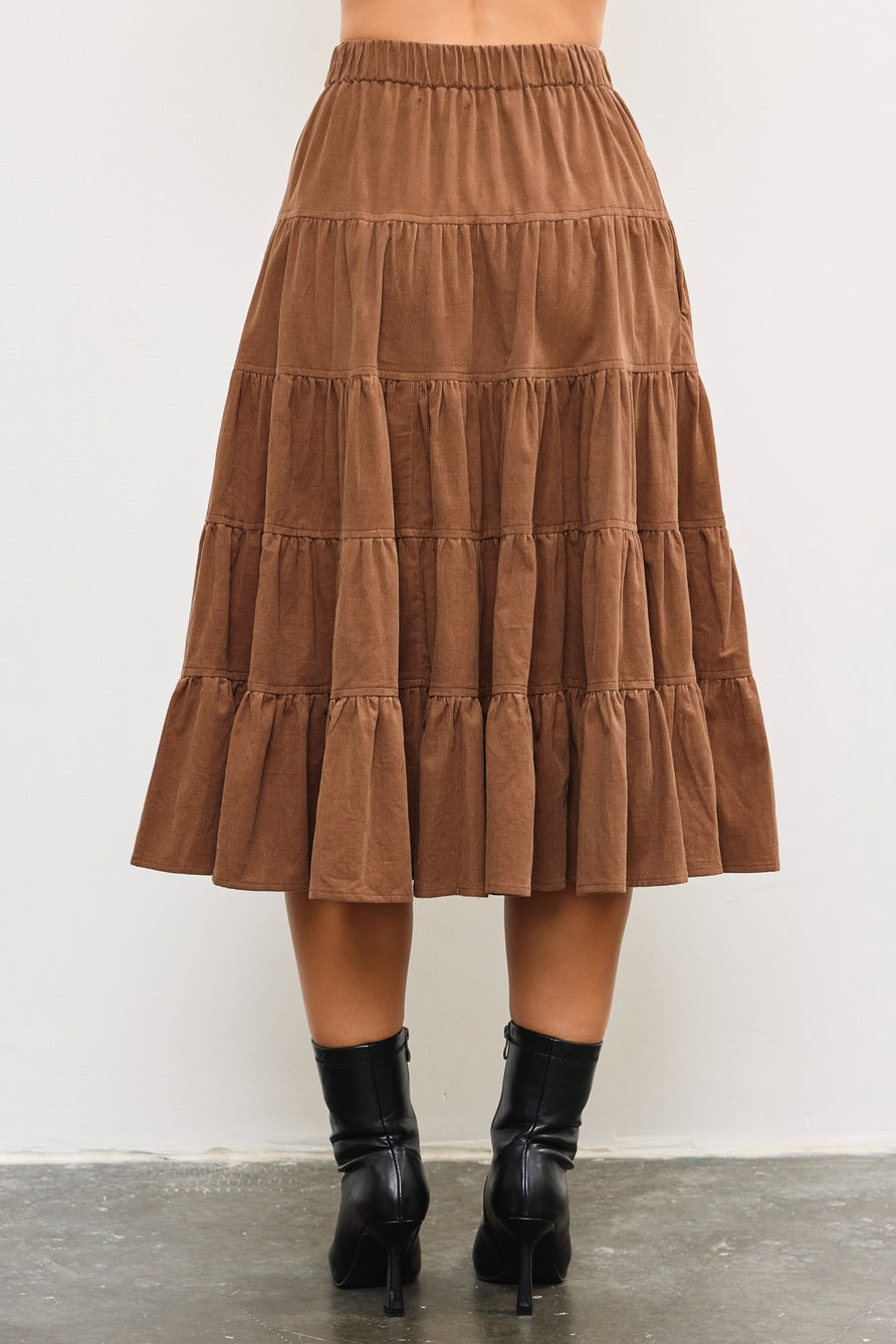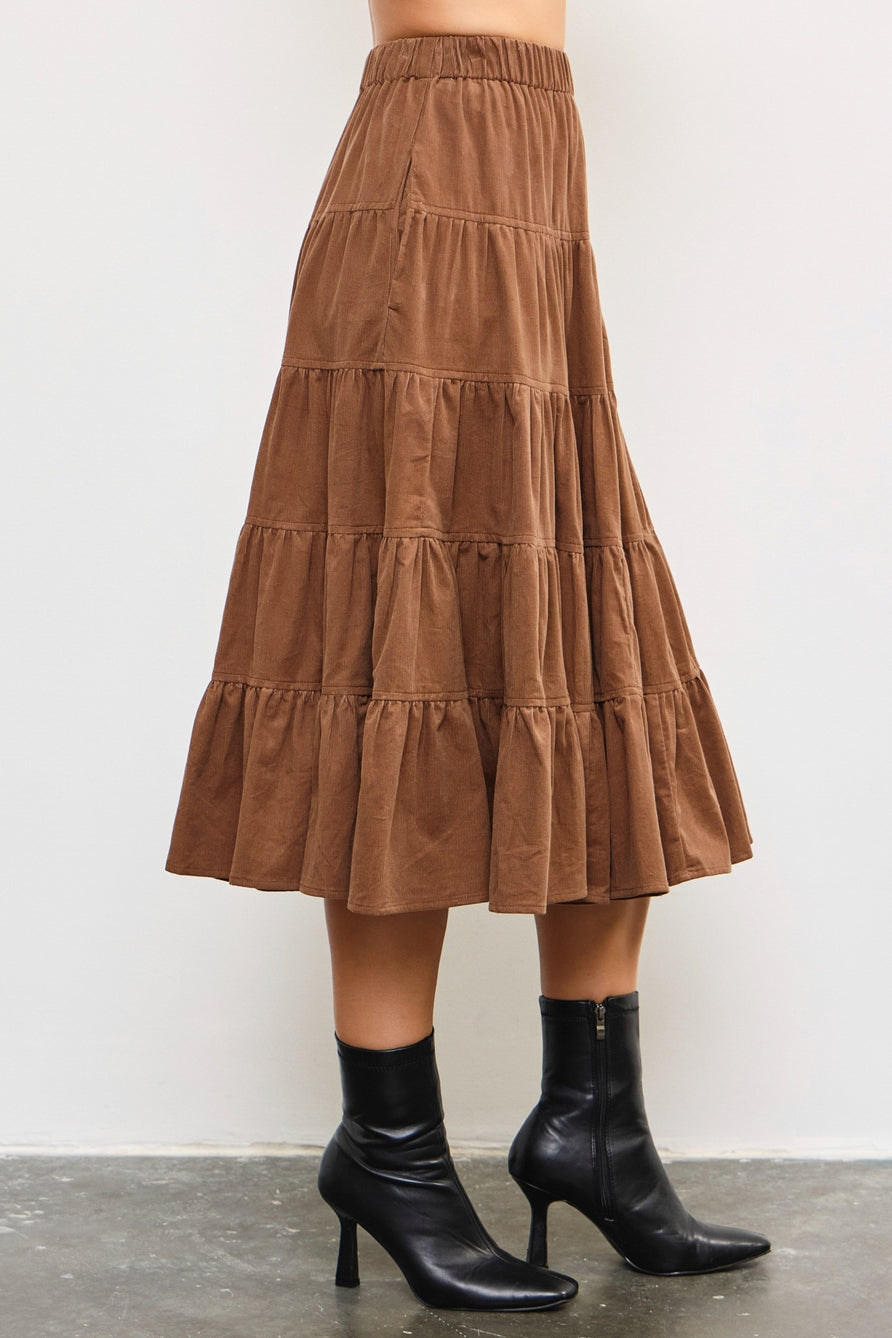 Latte Tiered Corduroy Skirt