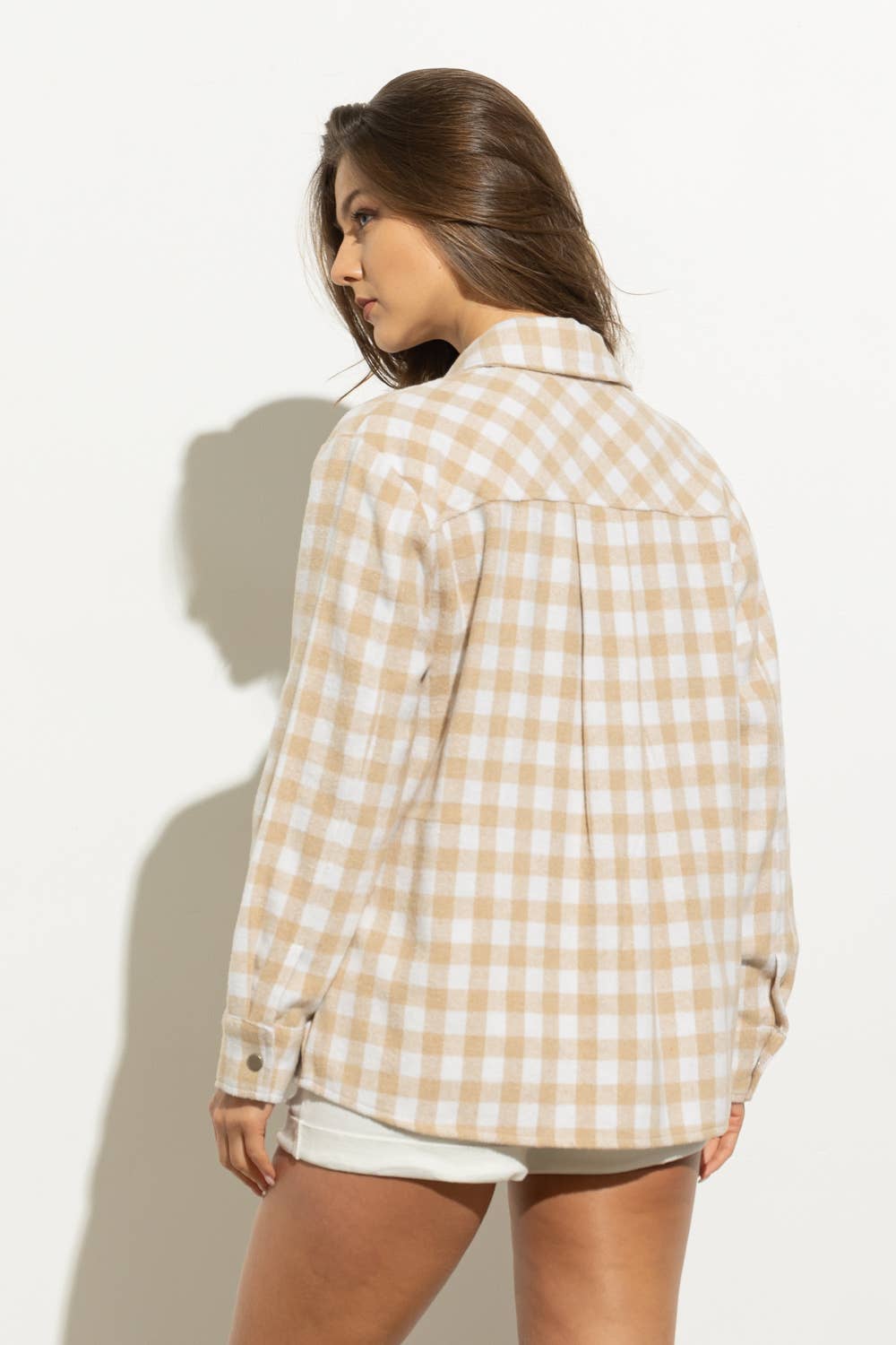 Gingham Yarn Dyed Brushed Crop Pocket Front Shirt Jacket