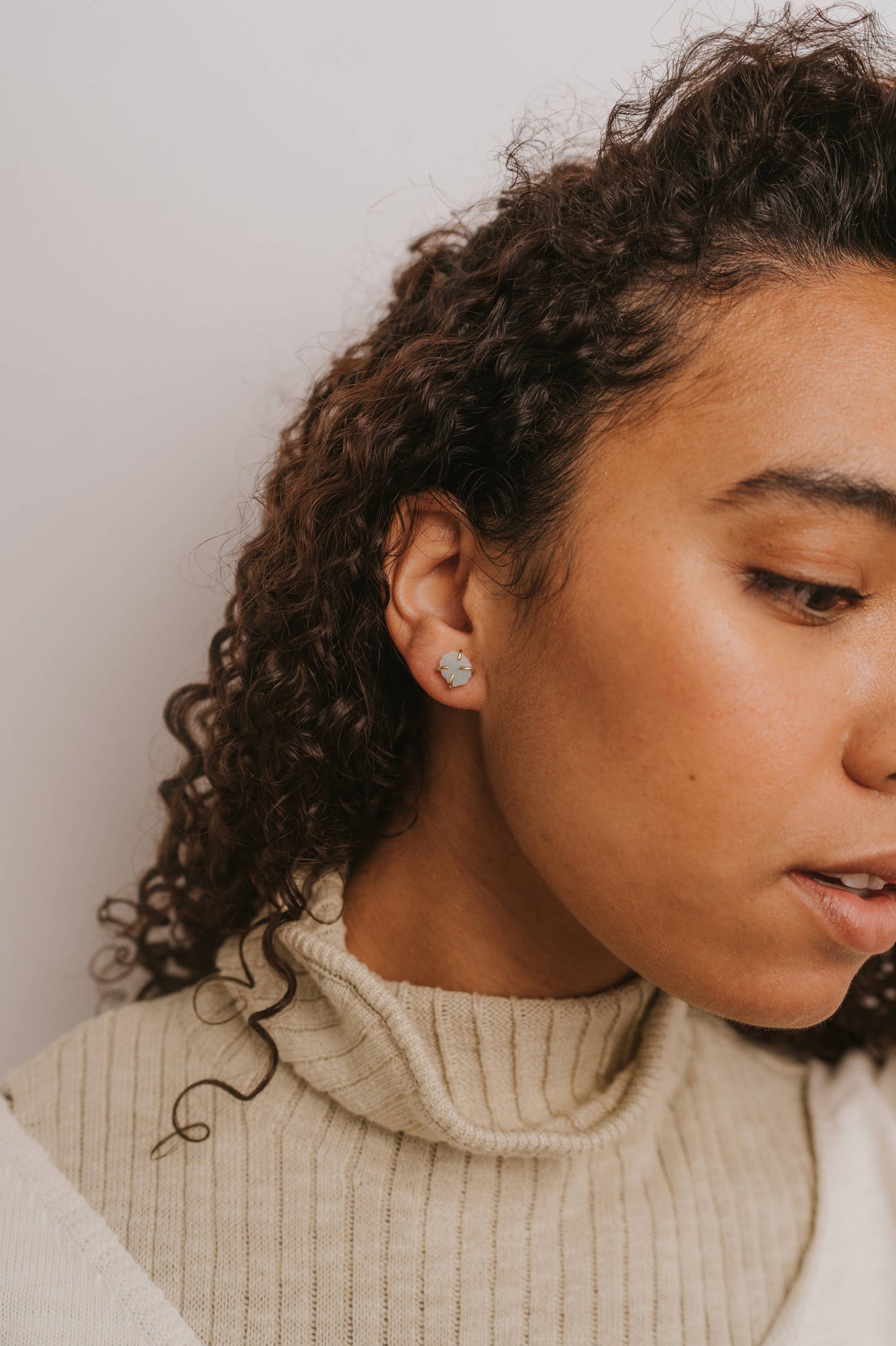 Hand-cut raw stones vary in shape and size. Each stone is set in a 4-prong claw setting. Amazonite stones are known as the hope stone, bringing optimism to difficult decisions by clearing away worries.
