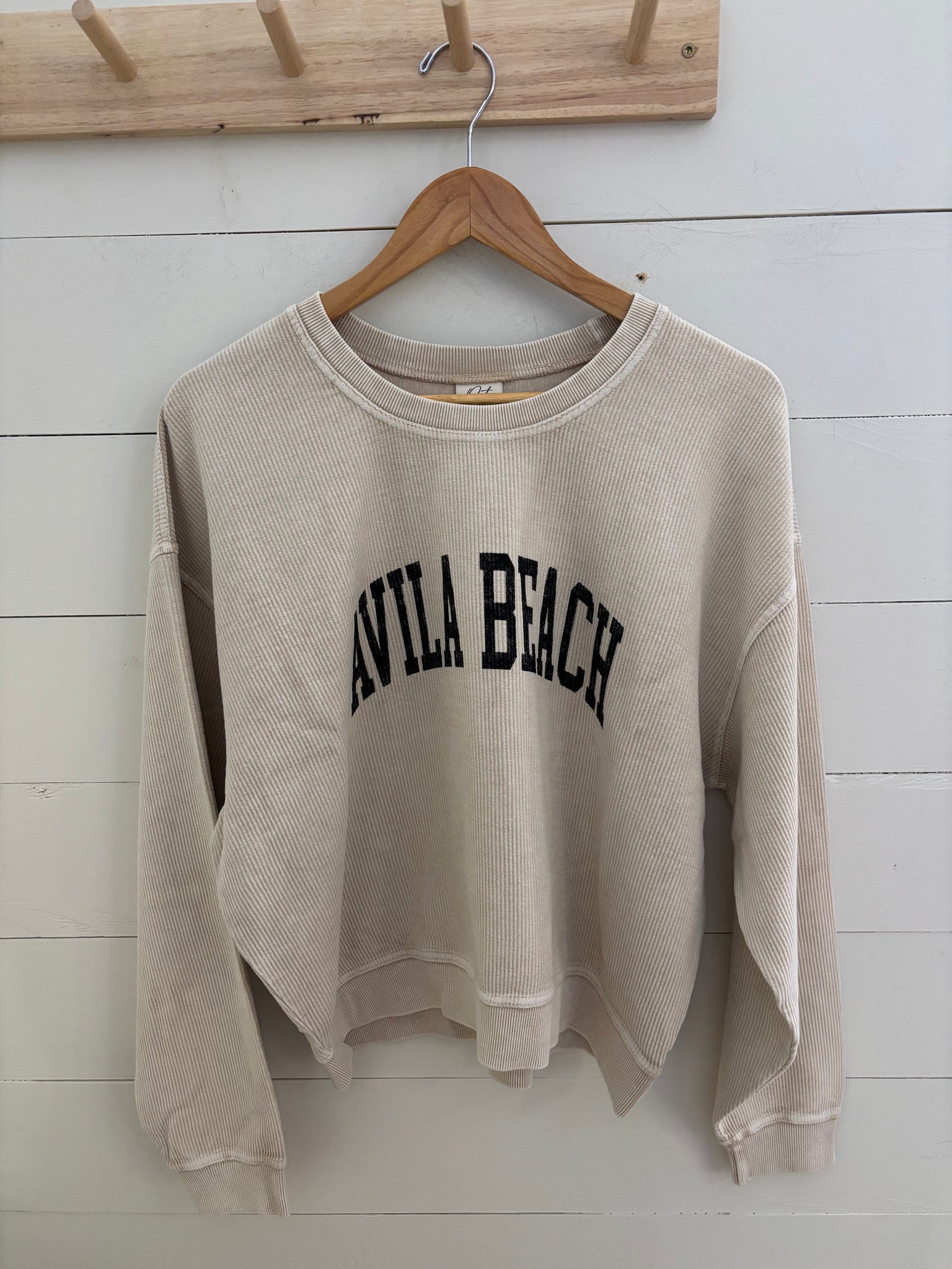 The Avila Beach Cropped Pullover blends cozy thermal fabric with soft corduroy for a unique, fun look. Its flattering cropped design offers comfort and style, making it a perfect choice for casual days or layering on chilly evenings. Show your Avila Beach pride while staying warm and effortlessly cute in this must-have pullover.