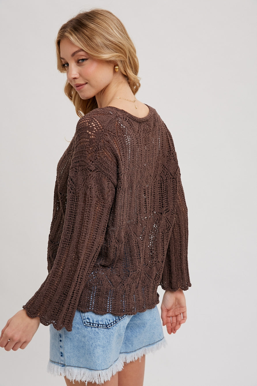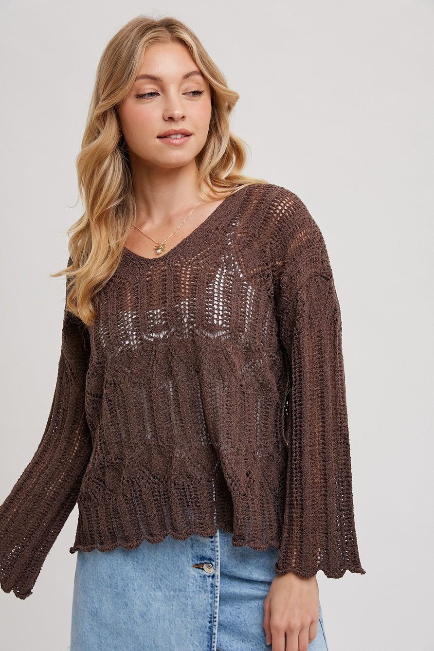 Elevate your wardrobe with the Coffee Open Knit Sweater, designed for both style and comfort. Its breathable, textured open knit fabric ensures all-day ease, while the flattering V-neckline adds a touch of sophistication. Perfectly blending casual and semi-dressy, this versatile piece transitions effortlessly from relaxed days to chic evenings. Embrace a look that’s as adaptable as your lifestyle.