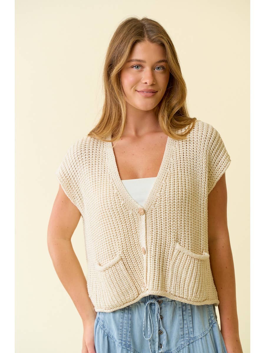 This vest is your new layering superstar! The flattering V-neckline plays beautifully with everything from fitted tanks to oversized tees and dresses, while the button-down front—complete with matching knit-covered buttons—keeps things polished and put-together. Love the relaxed, boxy silhouette that skims your frame without clinging, hitting just right at the hip for that effortlessly cool vibe.