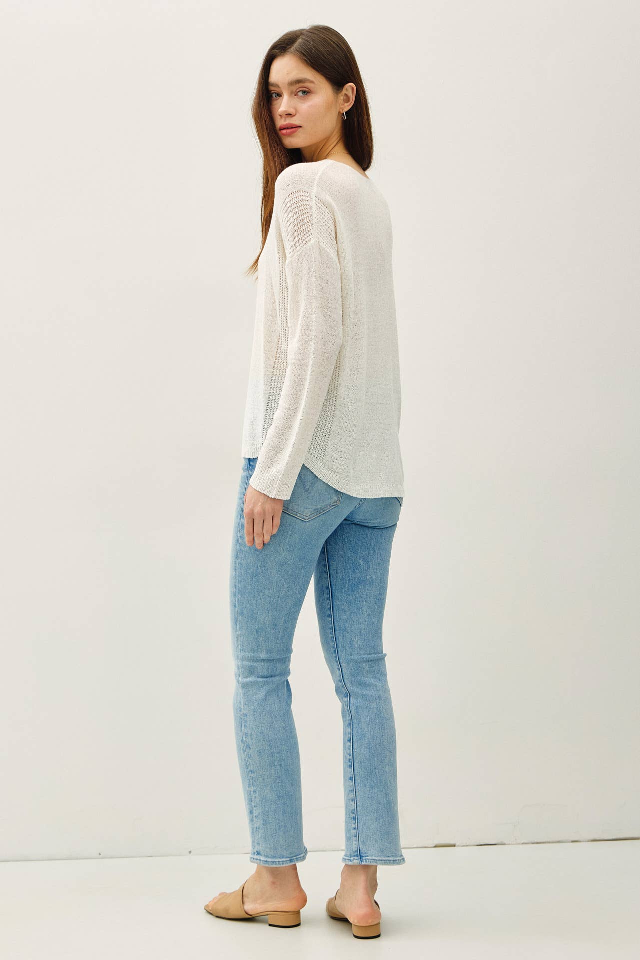 Effortlessly chic and oh-so-comfy, this lightweight sweater top is your new go-to piece. The relaxed boat neckline and drop shoulders create an easy, laid-back vibe, while ribbed details at the hem and cuffs add just the right amount of texture. Long sleeves keep things breezy without the bulk, and the loose fit means you can move freely all day long. Perfect for layering or wearing solo, this rounded-hem beauty is ready for whatever you throw at it.