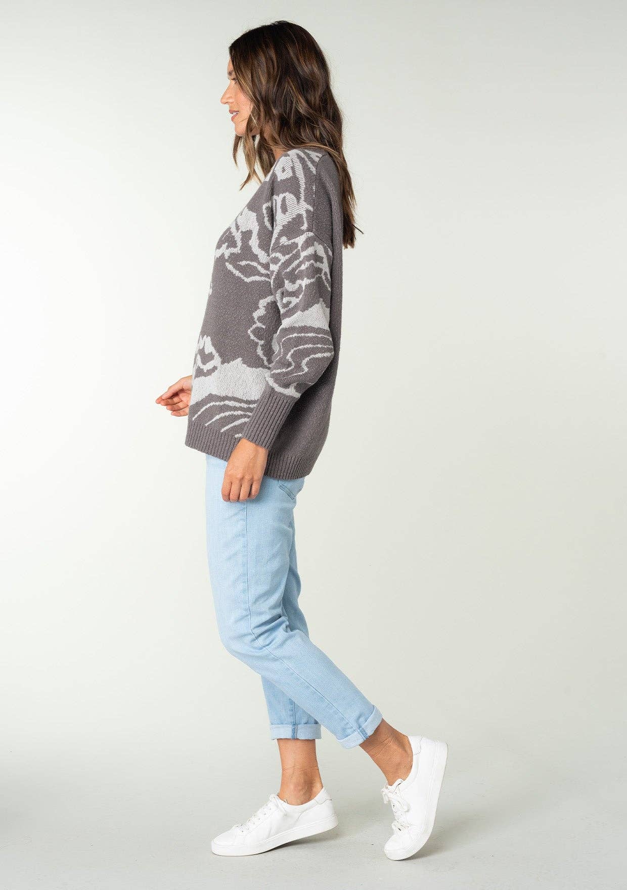 Wrap yourself in cozy charm with this oversized floral knit pullover—a fall essential that doesn't take itself too seriously. The playful floral design pairs beautifully with a relaxed drop shoulder silhouette, while ribbed cuffs, neckline, and hem keep everything polished. Round neckline and long sleeves make it endlessly versatile for layering or going solo. Your new favorite sweater is here.