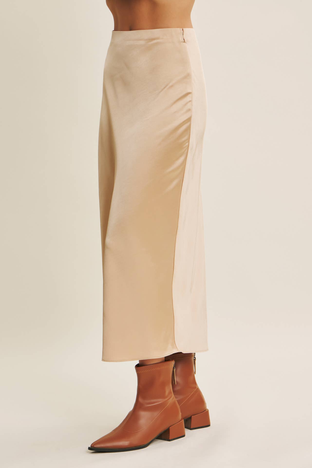 Luxurious satin fabric cascades effortlessly in this bias-cut skirt, hugging your curves while allowing complete freedom of movement. The elastic waistband and hidden side zip make getting dressed a breeze, so you can focus on looking polished without sacrificing comfort. Transition seamlessly from casual coffee dates paired with a fitted tee to sophisticated evenings styled with a silk camisole and pumps. This versatile essential adapts to your lifestyle, becoming the foundation of countless outfits you'll reach for season after season.