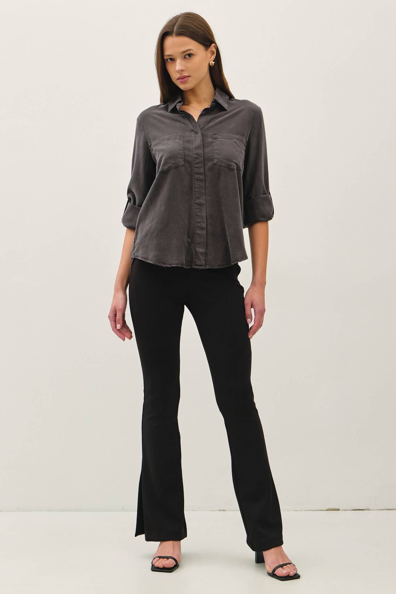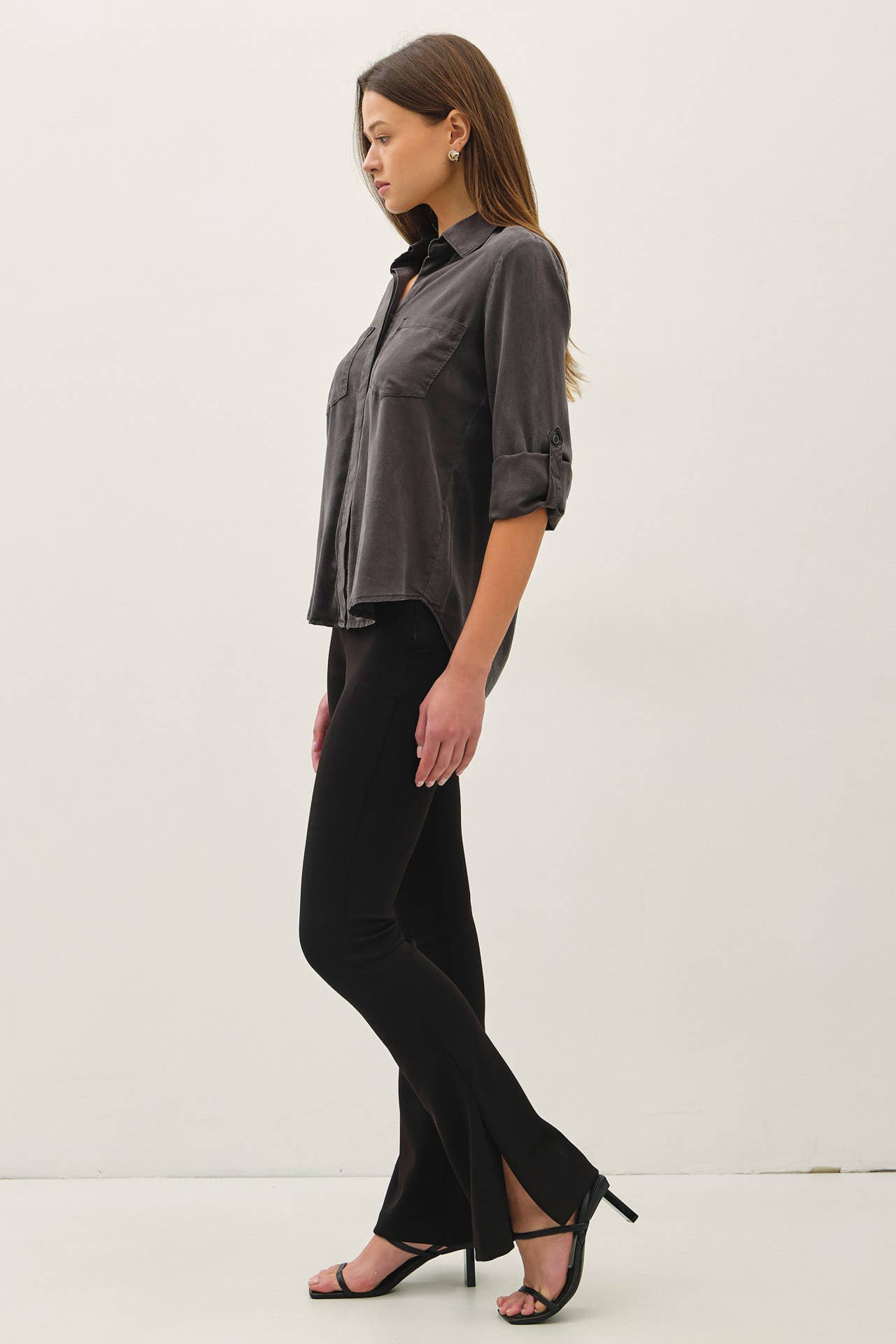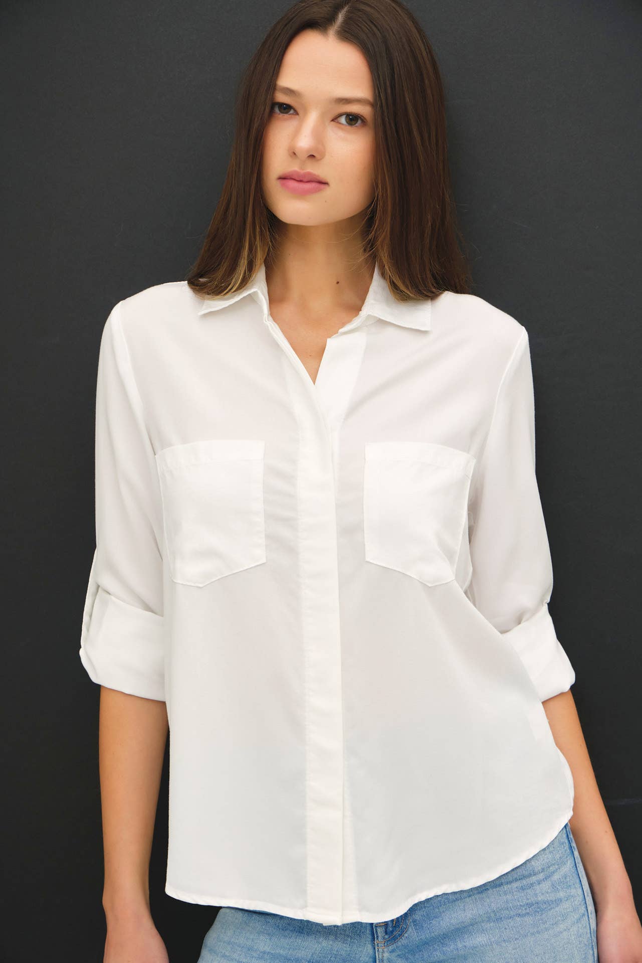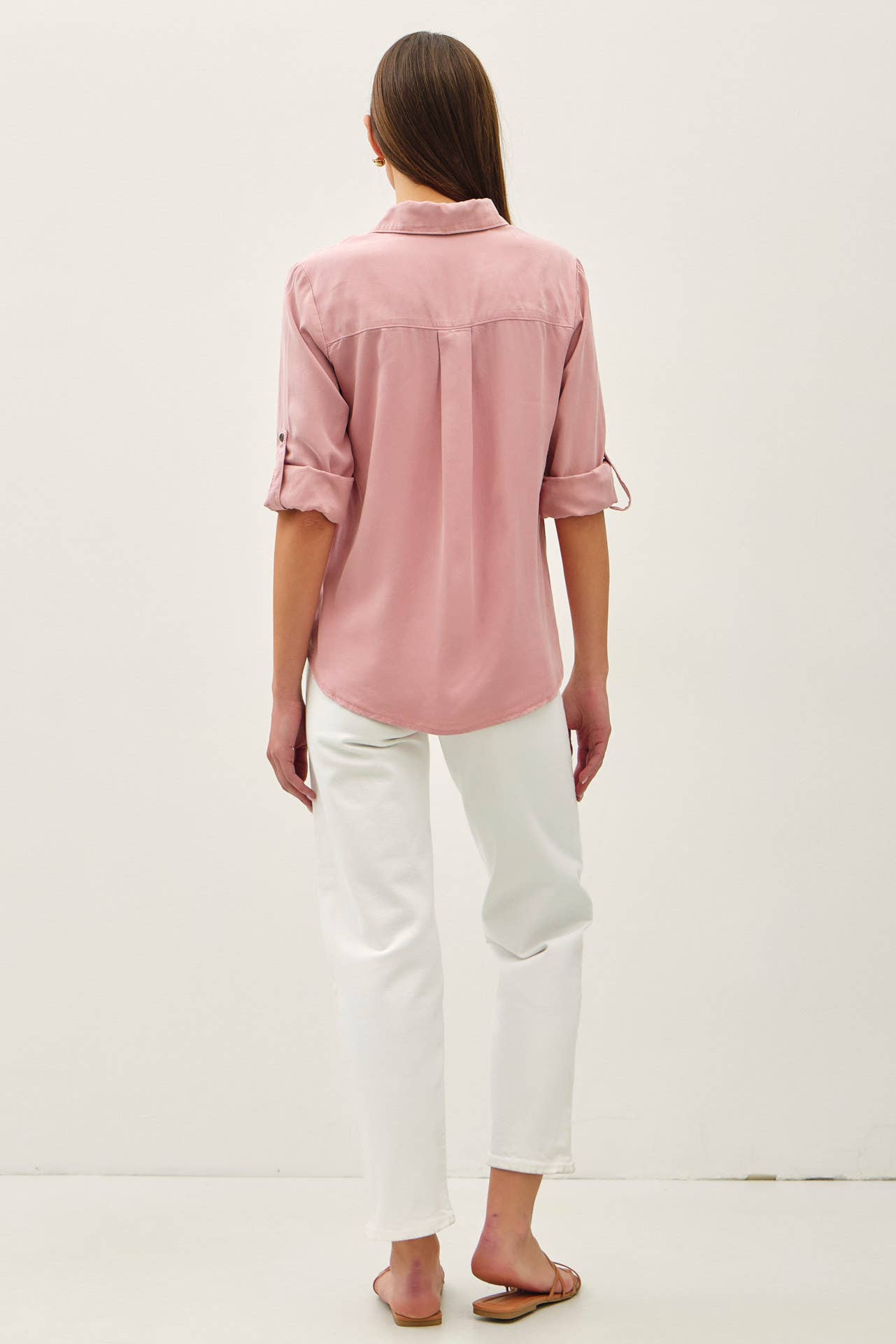 Effortlessly chic and wonderfully versatile, this oversized button-up blouse is your new wardrobe MVP. Crafted from soft-washed Tencel fabric that feels as good as it looks, it features rolled cuffs for that laid-back vibe, practical chest pockets, and a relaxed silhouette that hits below the hip. Dress it up with tailored trousers or throw it on with your favorite jeans—this easy-going essential works for literally any occasion.
